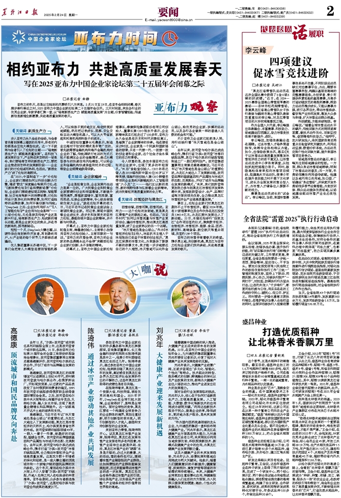 亚冬会刚刚落幕,哈尔滨市将发挥“后亚冬”效应,促进冰雪经济国际交流与合作,打造国家级冰雪运动示范区和冰雪旅游度假胜地。抓好亚冬会场馆赛后利用,建设亚冬会博物馆。
