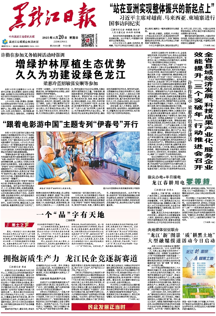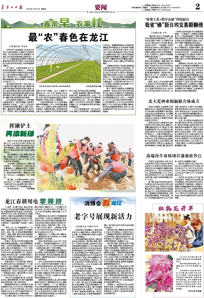 本报19日讯(记者梁金池)清明忙种麦,谷雨种大田。20日,谷雨节气第一天,与黑土地上希望与丰收的种子一同播撒的,还有一场聚焦“农业新质生产力”和“科技赋能春耕”的媒体盛宴——在省委宣传部指导下,由本报与中央广播电视总台黑龙