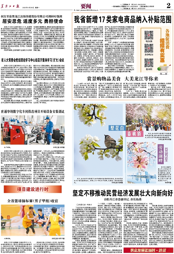本报27日讯(记者付宇)27日,省政府新闻办举行“五一”假期黑龙江省促消费活动新闻发布会。今年“五一”期间,省商务厅组织全省13个市(地)商务部门,以“购在龙江 食在龙江”为主题,推出一系列促消费活动,不断满足广大消费者多