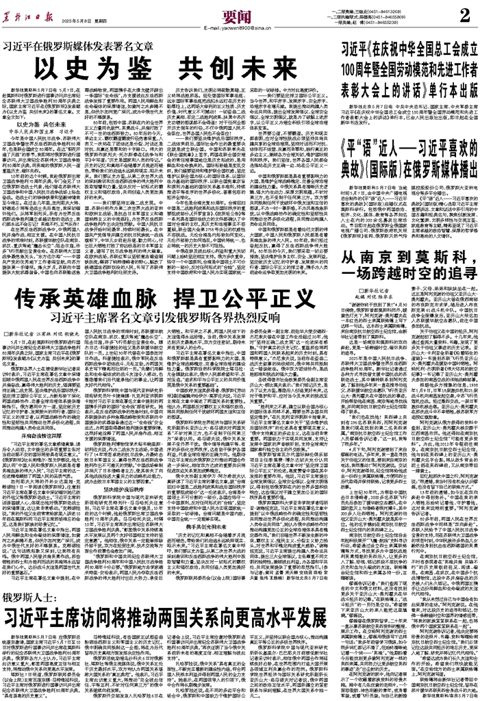 新华社北京5月7日电 当地时间5月7日,国家主席习近平向“和平薪火 时代新章——纪念中国人民抗日战争和苏联伟大卫国战争胜利80周年中俄人文交流活动”致贺信。