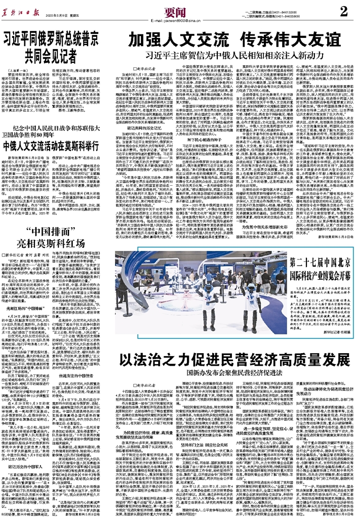 新华社莫斯科5月8日电(记者郝薇薇 黄河)当地时间5月8日中午,国家主席习近平同俄罗斯总统普京在莫斯科克里姆林宫会谈后共同会见记者。