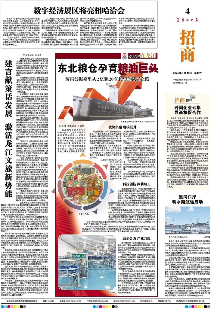 本报讯(记者曲静)黑龙江这片充满活力的沃土,正以其独特魅力吸引着全球投资者的目光。记者从省贸促会了解到,由中国国际商会外资企业工作委员会和黑龙江省贸促会承办的“外资企业龙江行”活动,将于5月15日至18日举行。