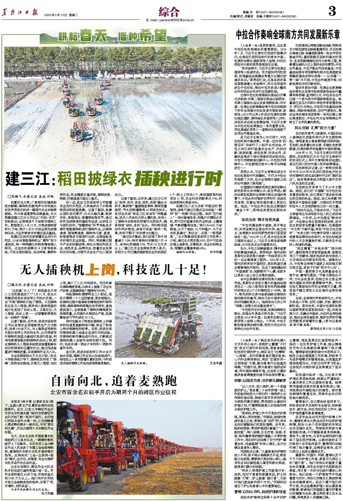 初夏的北大荒,广袤稻田如镜面般波光粼粼,插秧机的轰鸣声与田间地头的欢声笑语交织成一幅现代农业的春耕画卷。作为我国重要商品粮基地,北大荒集团建三江分公司正以“科技+农艺”双