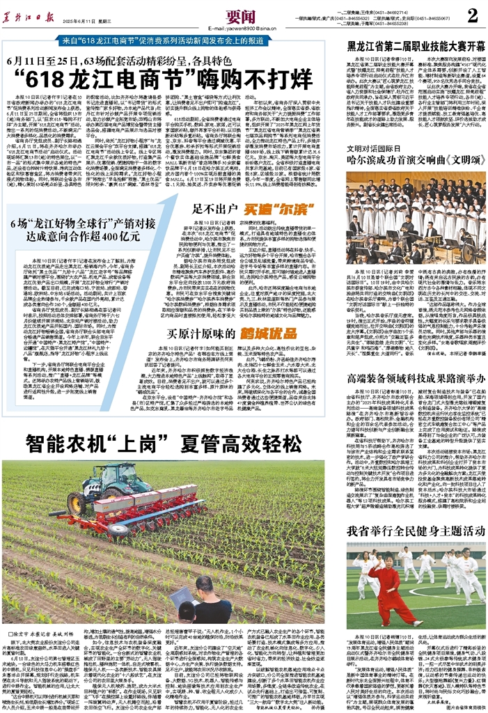 本报10日讯(记者付宇)记者在10日省政府新闻办举办的“618龙江电商节”促消费系列活动新闻发布会上获悉,6月11日至25日期间,全省将组织13市(地)商务部门,以“狂欢618·嗨购不打烊”为主题,开展“618龙江电商节”