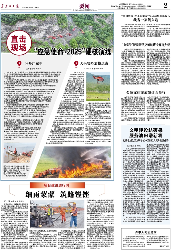 6月24日上午,“应急使命·2025”极端灾害事故场景新质救援能力检验性演习举行。东宁市演习围绕极端灾害事故场景断路、断网、断电应急救援展开,突出极
