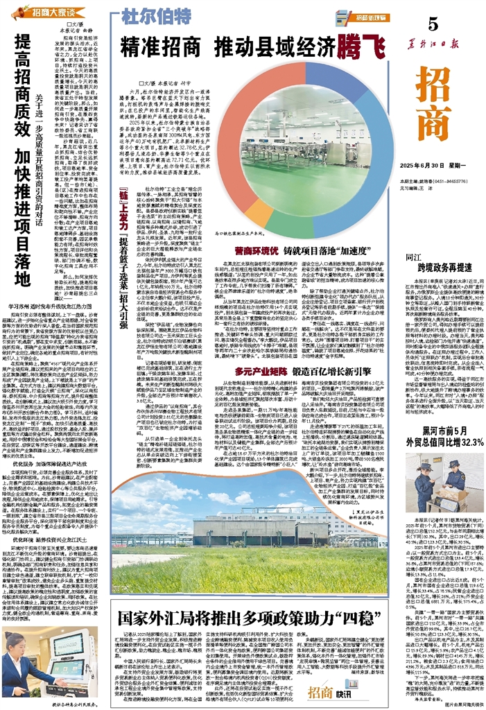 2024年,黑河市民营企业发展到22305户,同比增长5%,贡献了全市68%以上的规上工业营收、25%以上的外贸进出口总额,在稳增长、优结构、增动能等方面发挥了“主力军”作用。