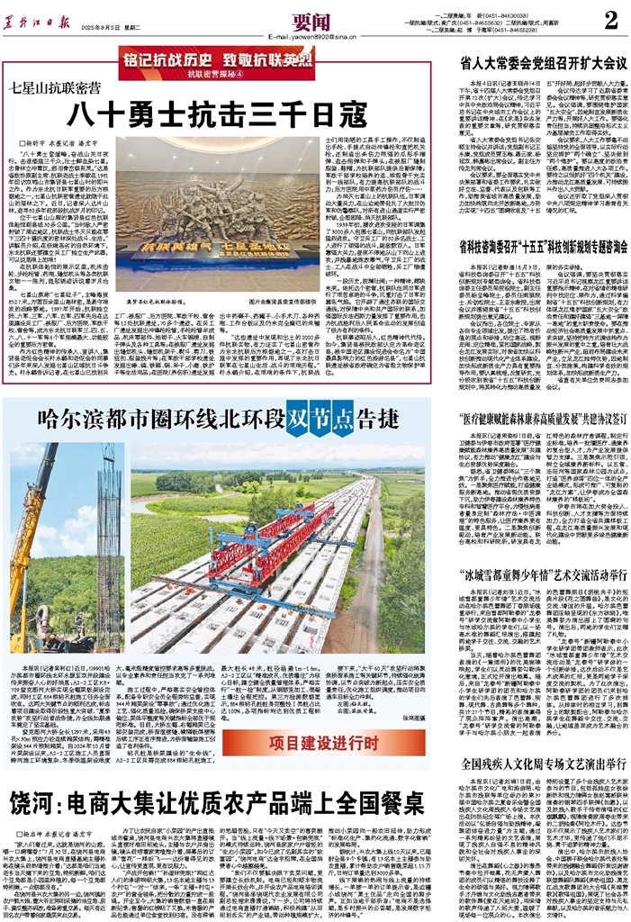 本报讯(记者吴利红)近日,G9901哈尔滨都市圈环线北环永源至双井段建设传来振奋人心的好消息:A2-2工区K8+709蜚克图河大桥实现全幅梁板架设完成,同时工区884根钻孔桩施工任务全面收官。这两大关键节点的顺利达成,标志
