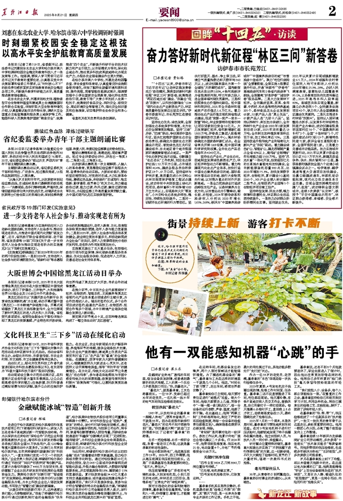 “‘十四五’以来,伊春市牢记习近平总书记‘让老林区焕发青春活力’政治嘱托,聚焦答好新时代新征程‘林区三问’新答卷,统筹推进‘两区四地五城’建设、‘双融合’促进‘双振兴’,以科技创新催