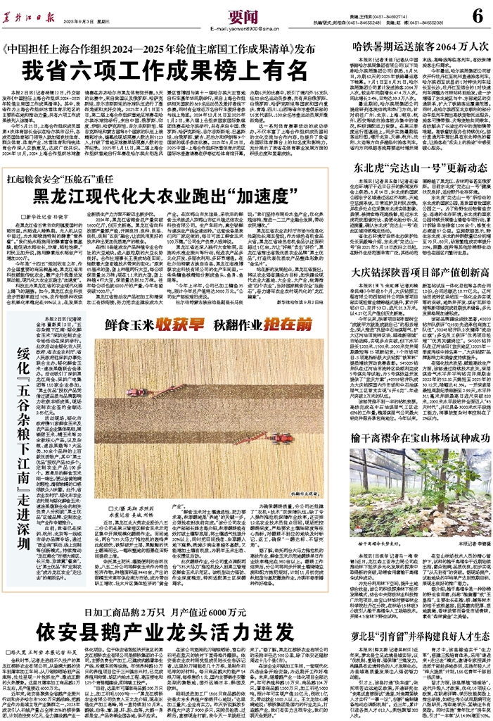 金秋时节,记者走进前不久投产的黑龙江柳桥农业有限公司,从装满大鹅的货车到屠宰加工车间、从刀翎晾晒场到产品库房,处处呈现一片抢抓生产、激战正酣的火热景象。这里日屠宰加工商