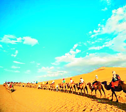 进入7月以来,丝绸之路历史文化名城甘肃敦煌旅游持续“升温”,鸣沙山下驼铃声声,月牙泉畔游人如织。据统计,今年上半年,敦煌各景区共接待中外游客达135.28万人,同比增长20.43%。