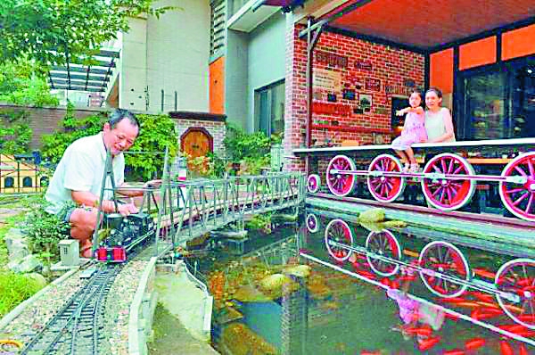 成都市63岁的张久安用5年时间、花费100余万元在330平方米花园里建造了“火车王国”。列车内,除了迷人的灯光外,还有旅客。张久安从小就喜欢玩 火车模型,谋划18年后如今终于圆梦。 辛文