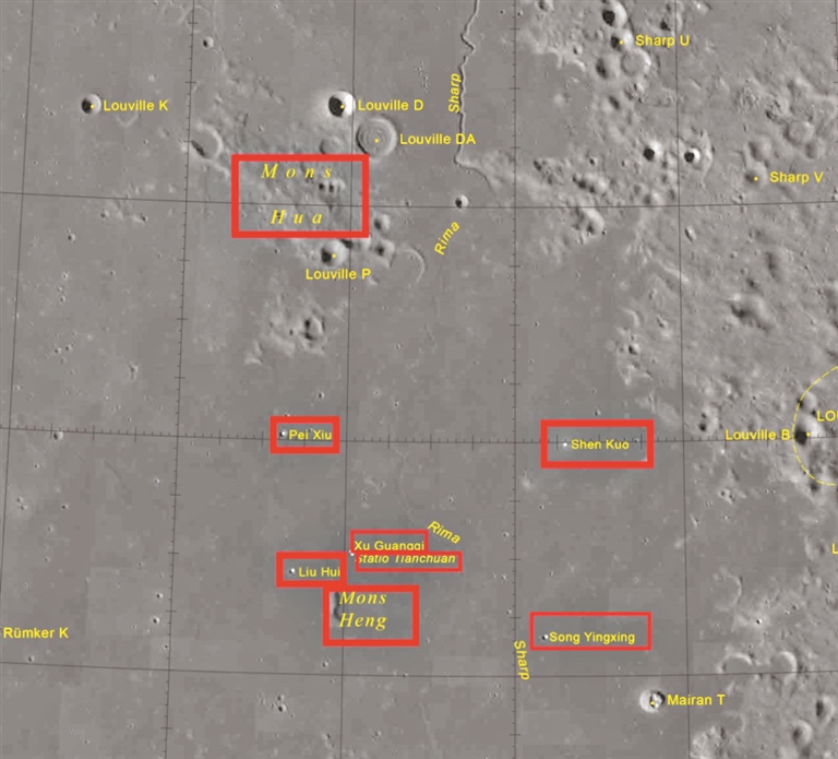 国际天文学联合会日前公布,批准中国提议在嫦娥五号降落地点附近的8个月球地貌的命名申请。至此,月球上的中国地名达35个。