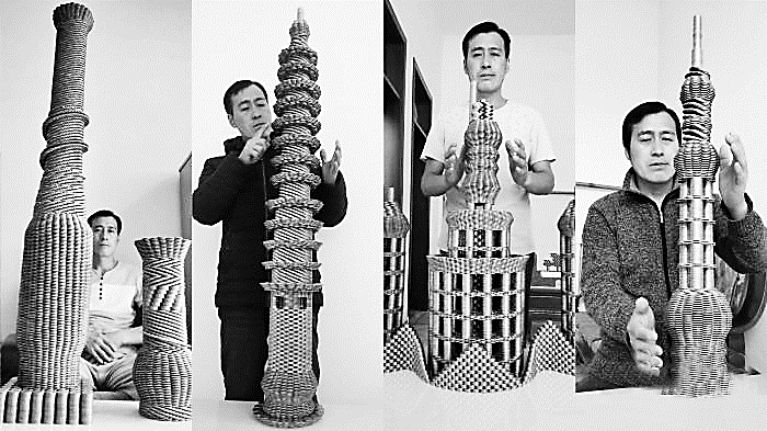 在河北高邑县农民眭立国的手中,硬币能变成各种各样的艺术品,目前,他用硬币垒出了埃菲尔铁塔、比萨斜塔、东方明珠塔等各类作品逾400件,这些硬币作品不使用任何粘合剂,全靠力学垒砌。邢璐