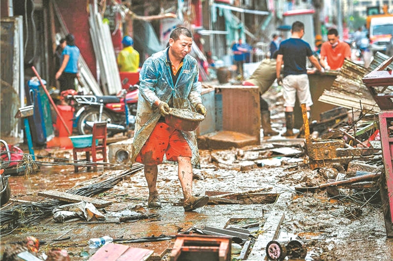 近日,湖北随州被特大暴雨袭击,清淤清障,是积水退后迫在眉睫的事情。据统计,目前已累计投入人力千余人次,清理过水街面39800余平方米,清理垃圾、杂物、淤泥6100余吨。周萍英