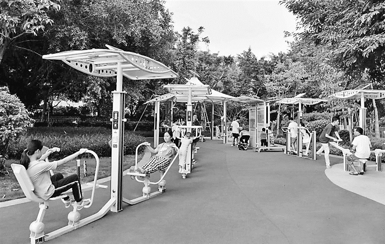 日前,经过提升改造后的福州西河智慧体育公园正式开园。园内采用太阳能供电的智能运动器械,市民运动时可以实时在屏幕上看到时间、步数、卡路里等数据,吸引民众前来锻炼。 张斌