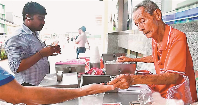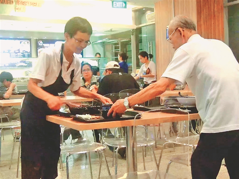 过了退休年龄,仍然坚持工作的老人,在新加坡并不罕见。在新加坡的服务场所,随处可见满头白发、步履蹒跚的老年人。他们是出租车司机,或者餐厅服务员,或者档口小贩。