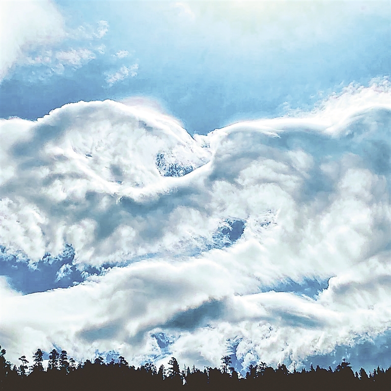 打开赏云协会的网站,人们能看到无穷无尽的想象力在上面延展:有人拍下了像飞碟一样的高积云,有人捕捉到如同星球大战里的“尤达大师”一样奇怪的云朵,有的云看来像一只喷火的巨龙,有的像羽绒服里的鸭绒,还有的像长着七个手指头的手掌……