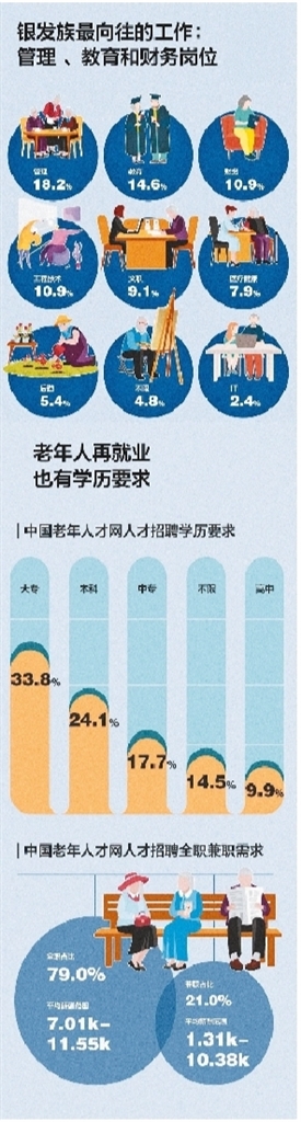 前述网络求职平台数据显示,明确表示“欢迎退休人员”的岗位中,财务会计、医疗健康、出版编辑等对专业技能有要求的岗位占据8成以上。