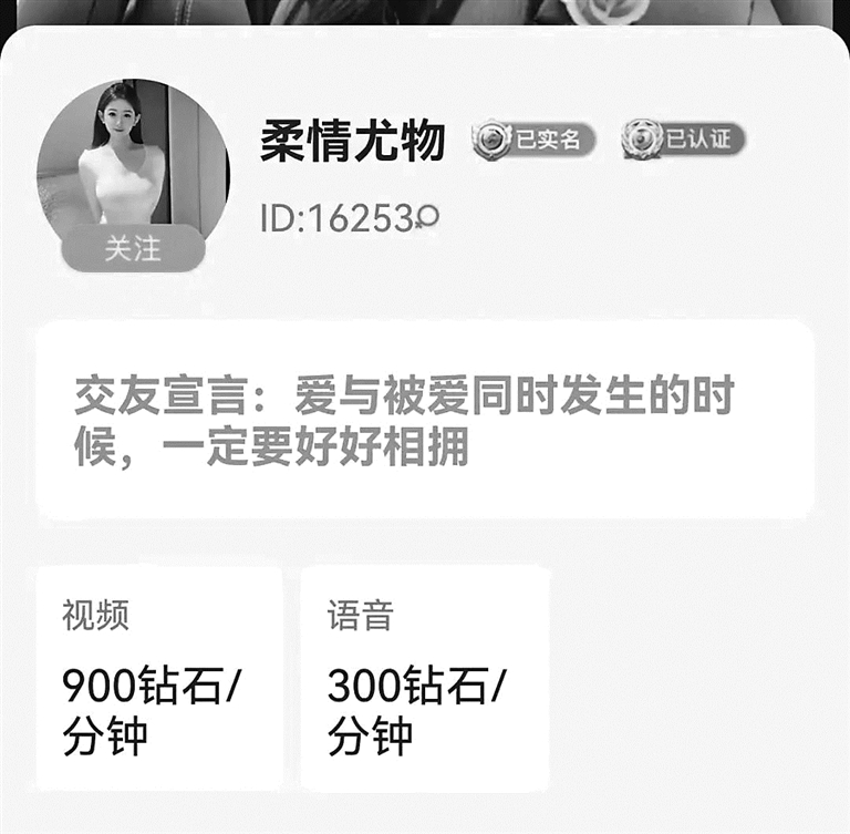 在不同平台上,杨晓明交过五位女友,年龄大多是三四十岁。同她们聊天,输入文字得花钱,音频通话要花钱,视频更得花钱,每小时需数百元。这是他愿意付出的代价,目的是“奔现”。