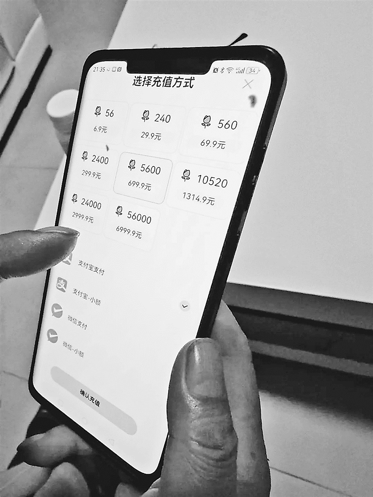 杨晓明询问能否将“柔情尤物”转移到新平台,对方说得交钱。在这一平台中,5000元可购买4.25万支玫瑰礼物,杨晓明一晚上就刷掉6.6万支玫瑰。“我为了找我女朋友,那时候都急眼了。”