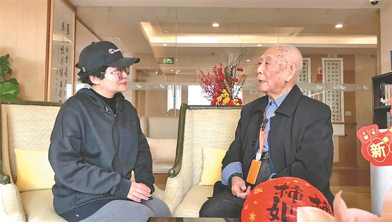 在一所养老机构,测评师“夕阳”与老人交流入住感受。