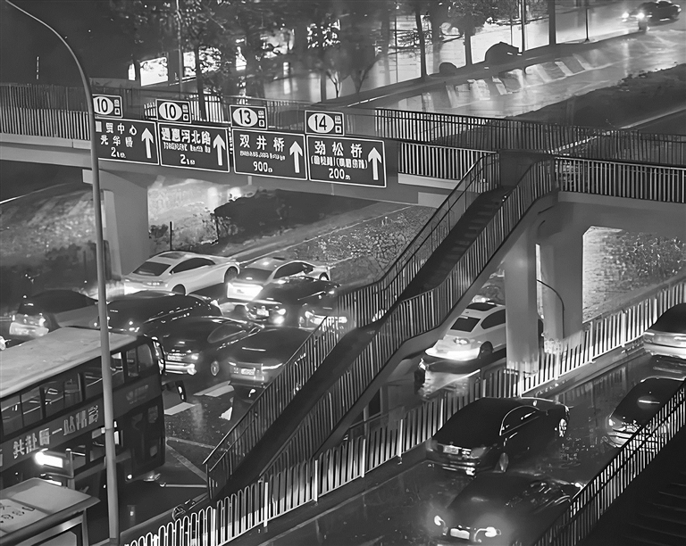 5月13日晚,桥下躲避冰雹的车辆导致严重拥堵。