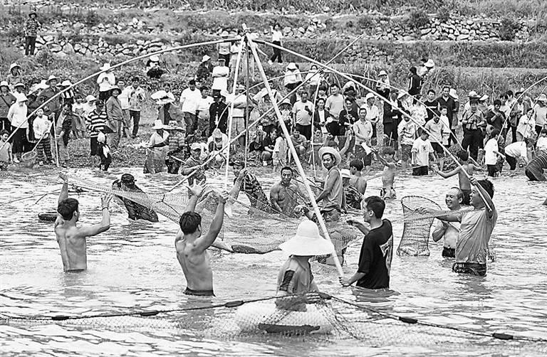 日前,云南省弥勒市巡检司镇高甸村委会麦塘村小组组织村民进行一年一度的捕鱼活动,彝族村民用扳罾、鱼罩、鱼筢等传统捕鱼工具开展作业,现场人欢鱼跃,呈现独特民俗风情。