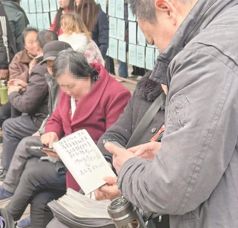 两人看着资料,时不时交换自己看到的信息,“我们的要求也不高,70后,年纪不要大太多就行。最好是体制内的,退休金更高,也安稳。”徐绣玲一边说着话,一边将其中一个写着“75年,国企工作,有自住房1套”,满足条件的男子信息记录下来。