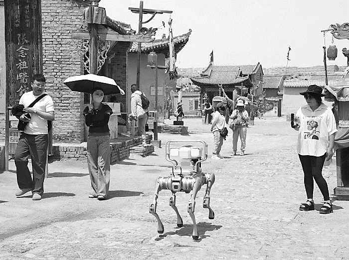 日前,安防机器狗在位于宁夏银川市的镇北堡西部影城进行巡逻。该机器狗名为“影城守护者”,不仅可同步执行定点巡逻、实时监控、紧急呼救等任务,还降低景区人力成本超20%,推动旅游业向智能化、人性化升级。
