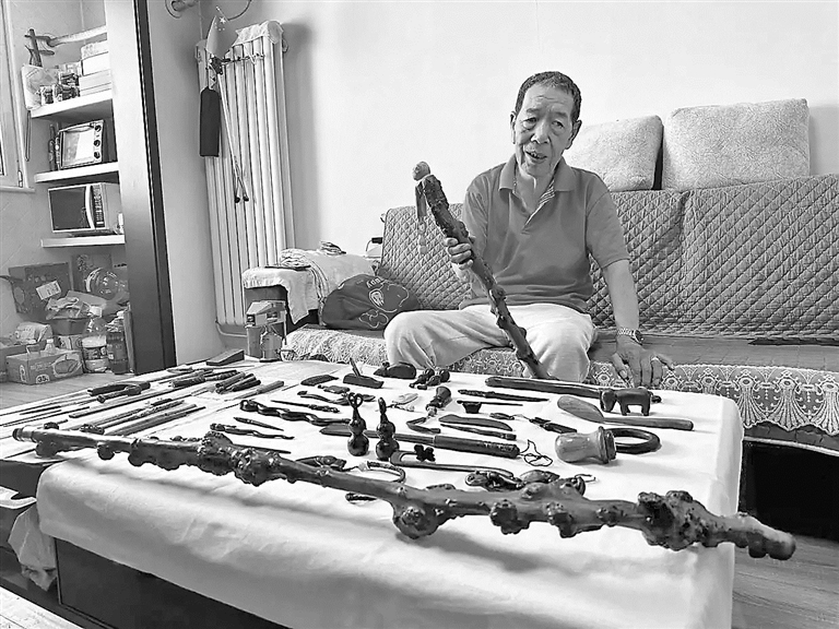 北京市丰台区福海棠华苑小区76岁老人丛玉昆,将废木料变废为宝,雕刻出上千件木雕作品,包括拐杖、发簪、茶勺等,大多都无偿送给了邻居。丛玉昆的手艺和善举,也让邻里间的关系更加融洽。