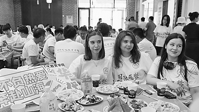 近日,黑龙江哈尔滨东北农业大学为毕业生准备了14万个“上车饺子”欢送毕业生踏上人生新旅程。据了解,东北农业大学连续11年为毕业生准备免费饺子,希望毕业生前程似锦。图为国际文化教育学院毕业生拍合照。赵宇航