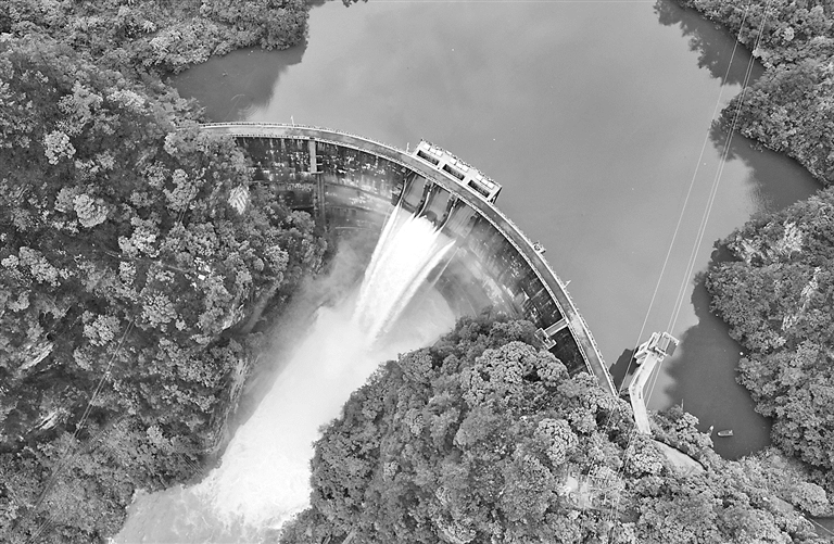 日前,受持续强降雨天气影响,湖南张家界市武陵源区索溪水库入库流量增加,当地开闸泄洪腾出库容,保持水库处于低水位迎汛状态,确保水库及群众生产生活安全。