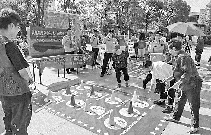 合肥公安积极探索创新,开展了一系列创意十足的反诈宣传行动。图为合肥市公安局高新分局通过互动体验和趣味游戏的方式邀请市民参加反诈活动。