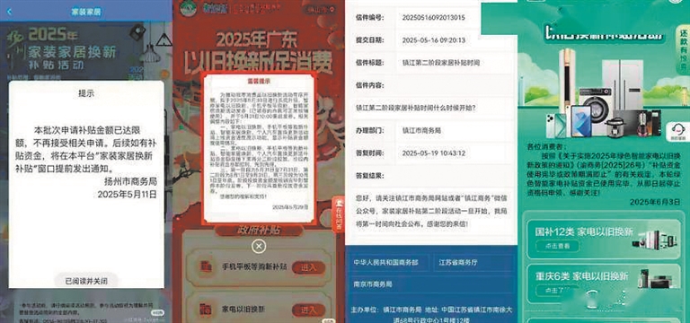 国家补贴(下文简称“国补”),是国家推出的消费补贴政策,旨在促进消费和产业升级,覆盖品类包括家电、数码产品等。一段时间以来持续进行中的“6·18”大促活动,叠加上“国补”,消费者热情高涨。但部分地区的消费者打开手机时却发现“补贴资金已使用完毕”“活动升级中”等提醒。