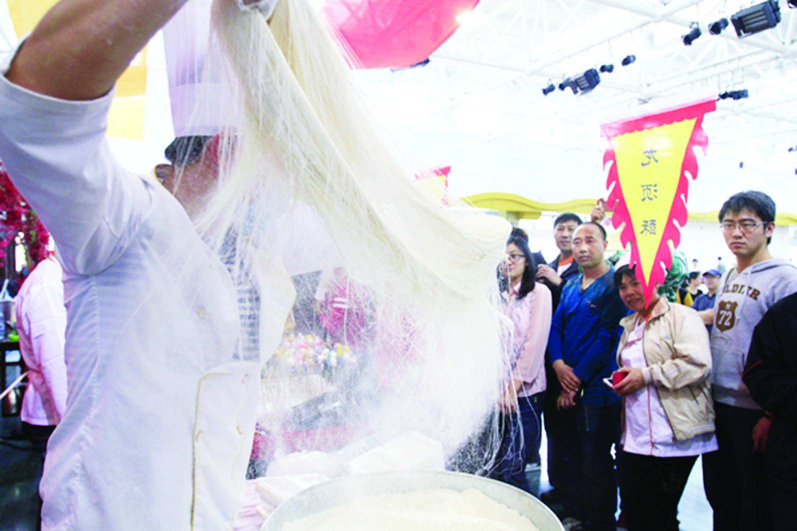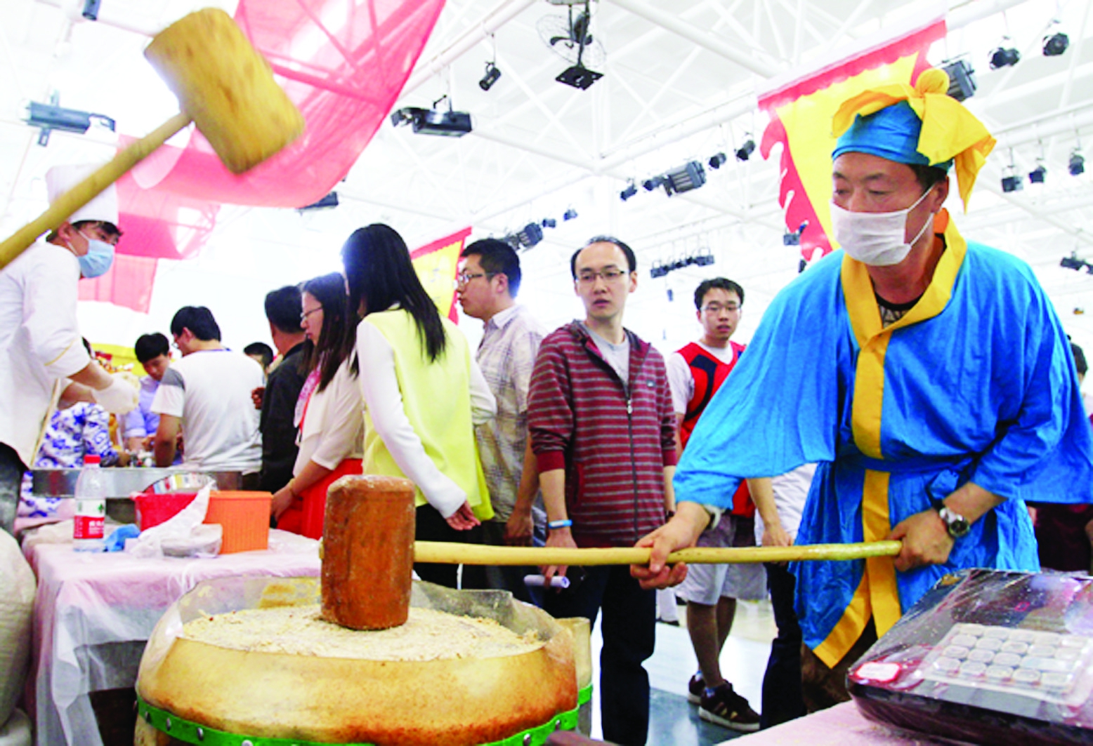 本报讯(记者朱莉文/摄)近日,哈工大饮食中心特聘民间艺人,在校内食堂现场表演中华名小吃的制作过程,工大师生不仅可在现场观看艺人们高超的美食制作手法,还能吃到传统民俗美食。 27日,记者在工大食堂看到,位于食堂一角的景记梅花糕摊位被师 生们围得严严实实,没揭开盖子的梅花糕就已散发着香气。另一边,两个师傅正挥着木槌,敲击着花生糖。厚厚的花生糖,在富有节奏的敲打下,变成了薄薄的片状,让师生们赞叹不已。此外,现场制作龙须酥的大厨也是关注焦点,只见大厨将大把龙须甩起,随着龙须的散开,周围的空气中也飘满了糖粉的清香。精湛的技艺,吸引着学生们纷纷拍照留念。 “东拉西扯”的龙须酥 “千锤百炼”的花生糖