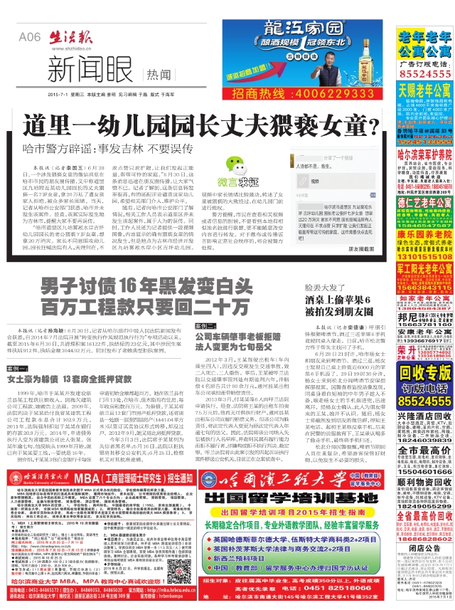 道里一幼儿园园长丈夫猥亵女童?