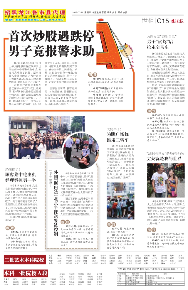 首次炒股遇跌停男子竟报警求助