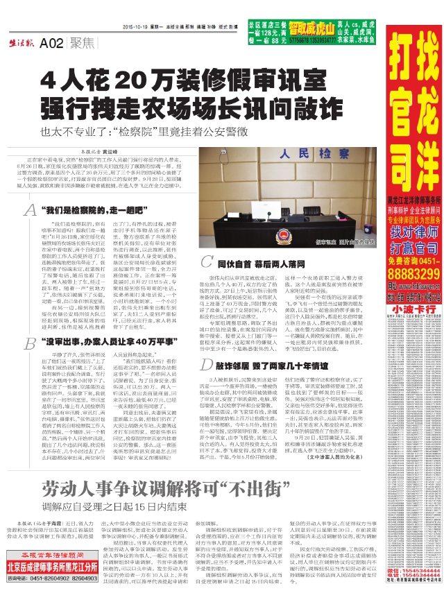 4人花20万装修假审讯室强行拽走农场场长讯问敲诈
