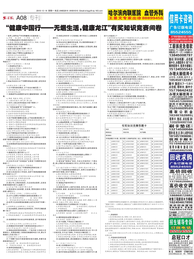 “健康中国行——无烟生活,健康龙江”有奖知识竞赛问卷