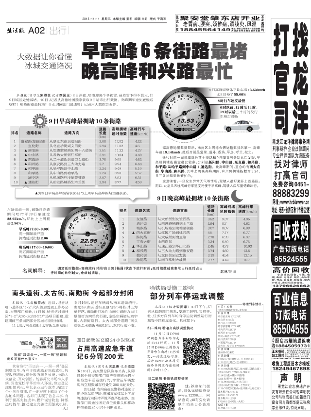 早高峰6条街路最堵晚高峰和兴路最忙