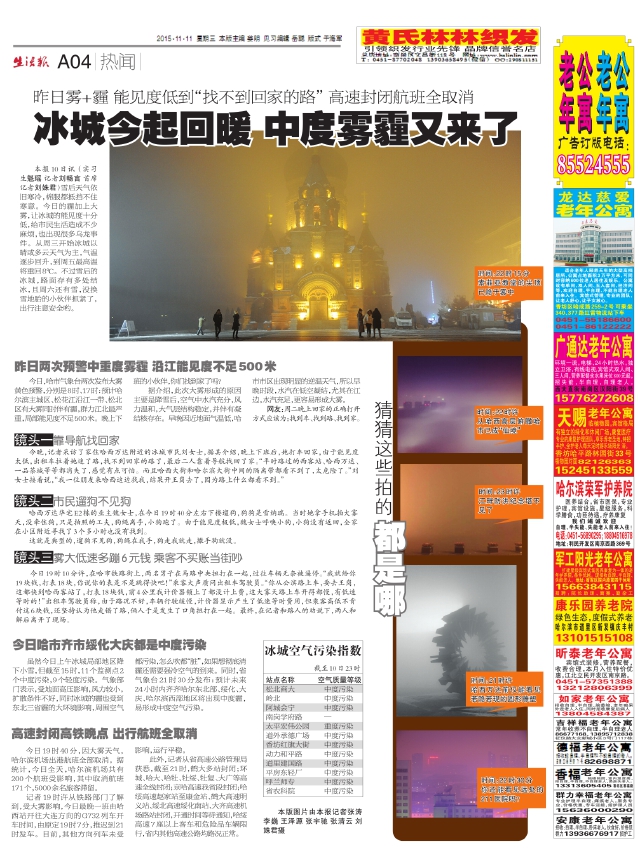 冰城今起回暖中度雾霾又来了