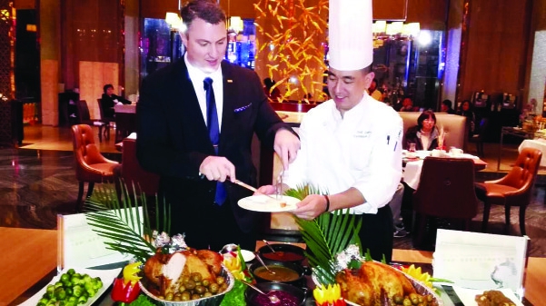 11月26日正值感恩节,哈尔滨万达嘉华酒店举办了“感恩夜·亮心灯”活动行。当晚,来自政、商、学术届的百余位宾客与福利院的孩子们一同亲历了传统地道的感恩节,赦免了名为“谢谢”的火鸡,参与了圣诞集市慈善义卖以及为出租车司机送“冬日温暖”活动,让感恩之心汇成了一股冬日暖流。同时,还携手点亮了圣诞灯,开启了今冬缤纷圣诞季。本次活动以“感恩夜·亮心灯”为主题,分为三部分进行,欢度感恩节、为出租车司机送冬日温暖、圣诞慈善点灯仪式。