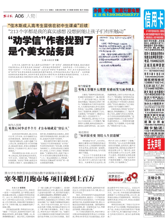 “劝学信”作者找到了是个美女站务员