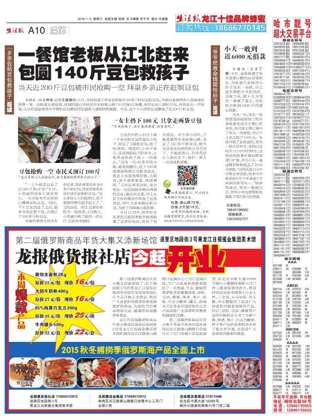 一餐馆老板从江北赶来包圆140斤豆包救孩子