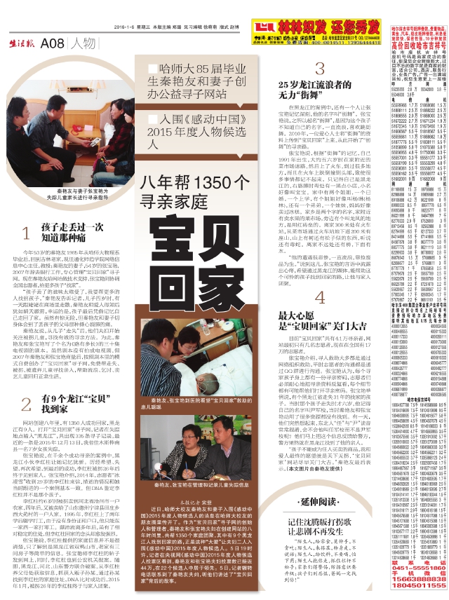 八年帮1350个寻亲家庭 宝贝回家