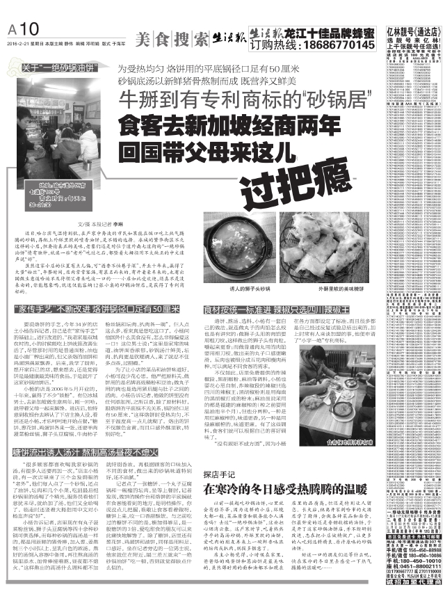 牛掰到有专利商标的“砂锅居”食客去新加坡经商两年回国带父母来这儿过把瘾