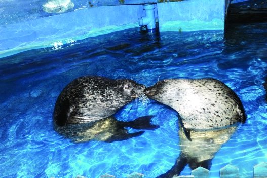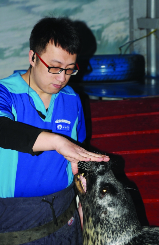本报记者薛宏莉首席记者张清云摄 3月1日,国际海豹日。这个因呼吁保护、防止猎杀而设立的日子,看似离我们很遥远;实际上,它却离我们很近,因为在冰城的极地馆里,就生活着数只海豹。它们拍手、戏水、接吻、向游客示好讨要食物,即使是呆萌地趴着,也能博得游客开怀大笑。 来自极地馆的最新消息是,驯养师们正在加紧帮海豹们“开发新动作”,并有计划今后让它们进入表演场,像海狮、海象一样,成为极地馆里的“专业演员”。 那么,这些海豹是如何接受训练的,它们身上又有着怎样的“萌事”呢?就随记者一起去哈尔滨极地馆“先睹为快”吧! 海字辈里的“屌丝” “海豹、海狮和海象,傻傻分不清!”这是去极地馆,很多游客的“囧态”。怎么分海狮、海豹、海象,估计每位家长都会被孩子这样问到。而央视前主持人张泉灵却是这样解释:长长牙的是海象,会顶球和四肢走路的是海狮,在陆上像大虫子似的蠕动着向前的是海豹。 哈尔滨极地馆的驯养师杨宇说,“海字辈”里,海豹、海狮和海象的区别有很多,“秘诀”之一是看长相、看气质:极地馆里的海象是海字辈里的大块头,身材明显比海狮、海豹“剽悍”许多,只要他一现身,保准游客一眼就能认出来。海狮、海豹虽然有点儿“撞脸”,可海狮前肢发达,走起路来抬头挺胸,颇有绅士范;而海豹却是“屌丝”一枚,前肢较小,所以走路靠肚皮,是趴着的。 其实,海豹和海狮的长相也是有一些差别,下面的图解或许能让你过目不忘,快来瞅瞅吧!四雄一雌的“集体生活” 哈尔滨极地馆里一共生活着5只海豹,四雄一雌。分别是8岁的里奥、亨利、阿福,7岁的阿宝,以及唯一女生——8岁的莎莎。在游客的眼里,几只小家伙长的好像没啥区别,可极地馆的驯养师却一眼就能认出谁是谁?“里奥的脸长得有点儿长,亨利的眼睛稍大,阿福最胖,阿宝的脑袋上有一个梯形痕迹,莎莎的个头最小。”杨宇说,海豹的种类很多,有斑海豹、髯海豹、鞍纹海豹、僧海豹、豹型海豹等十几种。哈尔滨极地馆的5个小家伙都是斑海豹,身上带有斑点,主要分布于我国的渤海和黄海,是唯一能在中国海域繁殖的鳍足类动物。 平日里,极地馆的这5只海豹,最幸福的事就是吃。鱿鱼、青鱼、多春鱼,每只海豹每天不吃上10斤都会饿得慌。这不,腰挎鱼桶的驯养师刚一进入海豹的地盘,几个小家伙就挤了上去。为了这口吃的,它们瞬间变得非常听话,你说咋训就咋训,你让干啥就干啥。有的甚至还为此练就了一身绝技。比如,里奥学会了装死;亨利学会了唱“男高音”(吼叫);还有阿福,最初是一给吃的就做双手拍水的动作,后来发现做这个动作,能够从游客那里获得好吃的,它们就主动向拿着食物的游客频频拍手“示好”。有时,看到游客拿着相机拍照,好奇心很重的他们还会瞪着小圆眼睛,边看边琢磨,样子萌极了。 5个小家伙的性格也各有千秋。莎莎是雌海豹中的“淑女”,胆子小,连吃饭都常常躲在后边。里奥聪明伶俐,学什么动作都很快,因此,从驯养师那里获得了不少口福;为了让驯养师陪他玩,他还学会了抱大腿,这时总能获得驯养师的爱抚。亨利有自己的小想法,他那“男高音”最初就是自创的,被驯养师捕捉到后,练成了“独门绝技”。最有个性的是“酸脸猴子”阿宝,技术活虽然没有啥,但是能挤,每次看到驯养师拿着鱼,他才不管什么“长幼有序”、“女士优先”,干脆跳到饲养员手边抢食物。因为牙齿尖,连朝夕相处的驯养师在投食和训练时,都要防着被它的牙齿“误伤”。 从“一夫多妻”到“极地馆走婚” 每年二、三月份,细心的游客到极地馆都会发现,5个小家伙常常身上涂着紫药水,尤其是里奥、亨利那两个“臭小子”,涂的最多。这是咋回事?原来,每年的这段时间,是斑海豹们的交配季。自然界的海豹奉行“一夫多妻制”,所以常有这样的景象:一只雌海豹的后面往往跟着数只雄海豹,但雌海豹只能从雄海豹中挑选一只,所以一场关乎爱情的决斗开始了——雄海豹们吼叫着恐吓对方,甚至用牙齿狠咬对方,受伤流血不可避免! 战斗结束后,胜利的雄海豹获得了交配权,然而它们并不常情,还会寻找下一个目标。它们很“没有责任心”,在自然界,雄海豹除了交配、使雌海豹受孕外,完全不抚养孩子,全靠雌海豹自己“养家”。更有趣的是,每一对海豹交配后,精子并不马上与卵子结合,而是在子宫壁上“等着”,到两三个月后才去着床。这样,在一种神秘“讯号”指引下,它们将在每年6月的同一天开始胚胎的形成和发育。 可是,在极地馆,莎莎和4个小伙子的命运却都比较“悲催”。“小伙子们”四男追一女,别说妻妾成群,实力不行的,就得年年打光棍。好在,如果莎莎心情好、不反感,它们中的某一个,可能还再有点儿机会。但“被包围”的莎莎也不幸福,她的“人生遗憾”是至今还没当上妈妈。极地馆的工作人员说,他们最大的希望就是帮莎莎成功地当上妈妈。 另外,告诉大家一个“秘密”:斑海豹皮肤是棕黑色,可极地馆那里出售的毛绒却是白色,这绝不是为了好看,而是“事出有因”!因为刚出生的小海豹“皮肤”颜色就是白的,这是一种保护色,长大了才变成的棕黑色。当然,海豹很自信,不管你评价哪个时期更好看,人家始终如一的做法是用“萌”把你融化,不信自己去看!