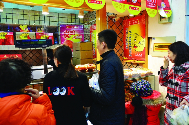 10日,农历二月初二,当日10时许,记者在哈市道里区一市场内看到,很多市民在副食店抢购猪头肉,短短十几分钟便卖出30余份猪头肉。店员告诉记者,傍晚下班时分才是市民购买猪头肉最火爆的时候。 本报记者张宇驰摄