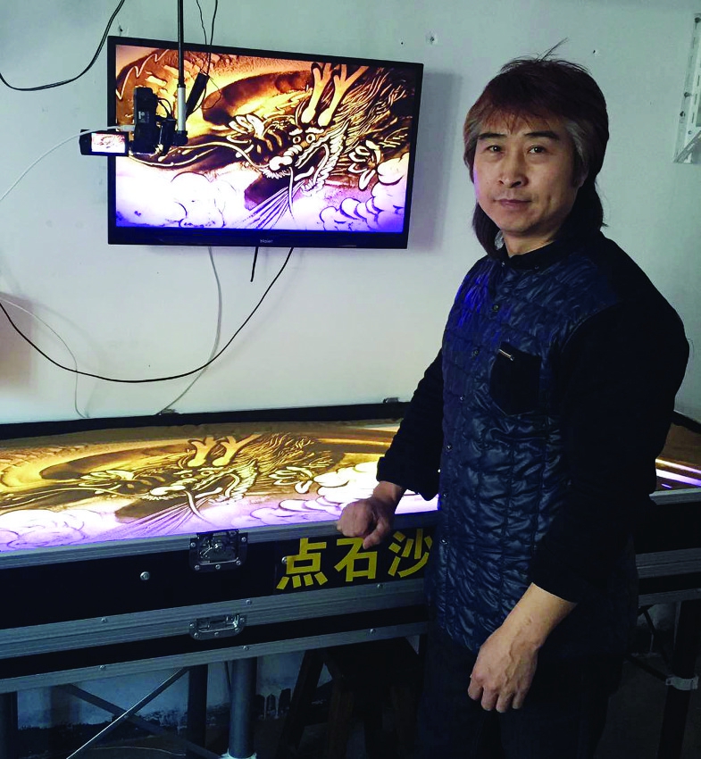 本报讯(实习生王沫记者王晓丁文/摄)10日是“二月二龙抬头”的日子,很多网友在朋友圈纷纷晒起了与“龙抬头”相关的视频短片和祝福段子。记者发现,一个2分钟左右、名为《二月二龙抬头的由来》的沙画视频,短时间内点击量就已经接近200万。记者辗转联系到该沙画作品的创作者——哈尔滨沙画师张辉,他告诉记者,这幅巨型作品一共用了7斤黄沙,耗时6小时完成。 据张辉介绍,此次作品以“二月二龙抬头”的传说为灵感,用沙画这一转瞬即逝的艺术表现形式,勾勒出一幅老龙王抬头为农民祈福求雨的场景。10日上午,记者在张辉的沙画室看到,这幅作品是在一个长1.2米、宽0.6米的玻璃沙画台上创作而成,7斤的黄沙在沙画师灵活的手中,瞬间变为一幅幅富有灵性的画面。
