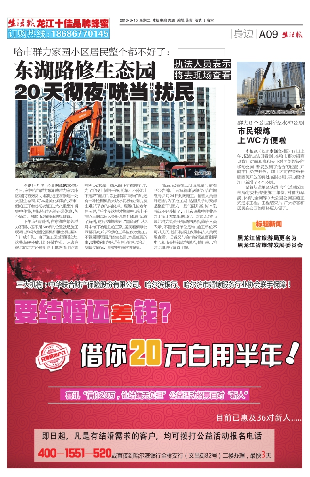 东湖路修生态园20天彻夜“咣当”扰民